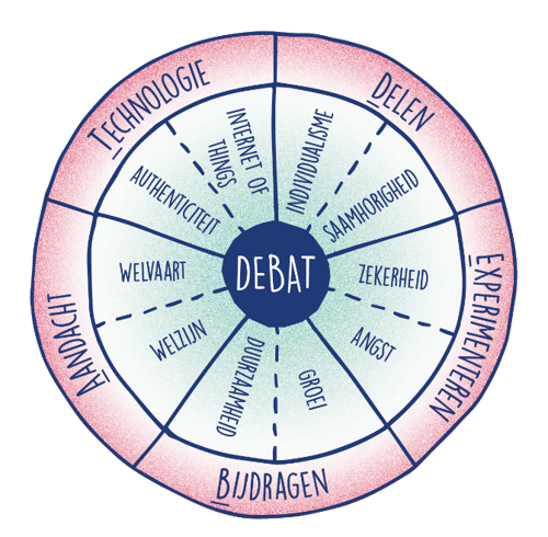 DEBAT staat voor de beginletters van dé vijf toekomstbestendige richtingen voor bedrijven en regio’s in de vrijetijdseconomie. Iedere richting is gebaseerd op fundamentele megatrends in de samenleving.