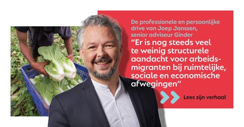 Onlangs deelde Joep het schrijnende verhaal weer tijdens een innovatiedag met zijn Ginder-collega’s. “Ik voel dan alle emoties weer bovenkomen. Regels voor de omgang met en huisvesting van dieren waren strikt, maar voor arbeidsmigranten waren ze er destijds niet of nauwelijks. Te erg voor woorden eigenlijk. Gelukkig is er nu meer aandacht en is de regelgeving inmiddels verbeterd. Wel is het nog altijd noodzakelijk om partijen en stakeholders ervan te overtuigen dat de inzet van arbeidsmigranten in Nederland structureel is en geen fenomeen dat komt en gaat. En dat je dus samen met arbeidsmigranten en alle betrokken partijen in een gemeente of regio het vraagstuk moet oplossen.”